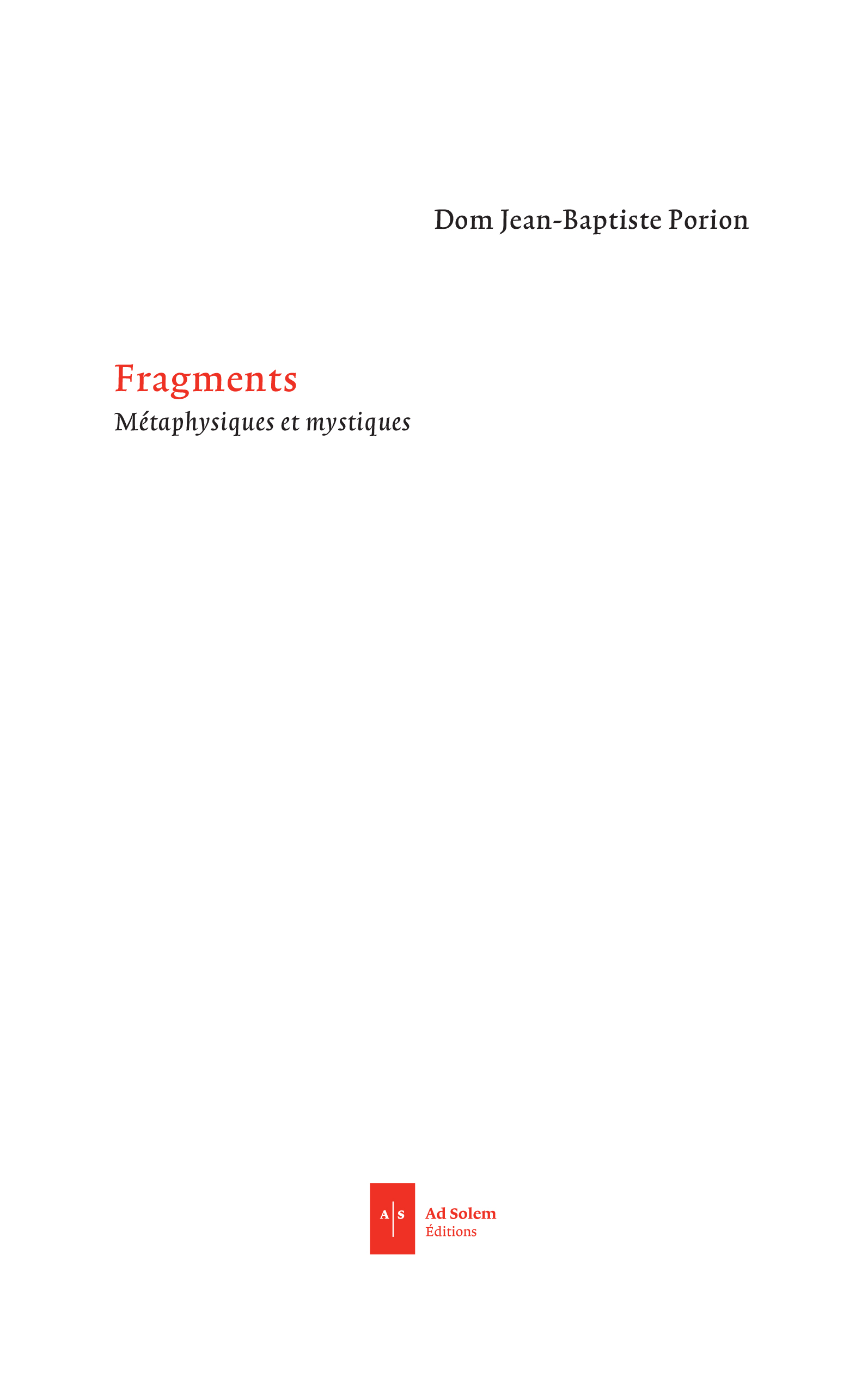 Ces Fragments réunissent thématiquement une collection de propos échangés entre Dom Jean-Baptiste Porion (1899-1987) et un autre moine chartreux, notamment sur le taoïsme, la mystique d'Hadewjich d'Anvers et des Rhéno-flamands, ou les réformes de Vatican II, recueillis sans ordre explicite au fil des ans et des dispositions intérieures. Ceux qui liront ce livre ne seront pas nécessairement chartreux, ni religieux ni même, peut-être, prédisposés au silence contemplatif ou à la prière. Ils y découvriront la hauteur d'une pensée qui ne s'est pas détournée des plus hautes sagesses : issues du temple de Delphes, des écrits taoïstes de Lao Tseu ou de Tchouang Tseu, de la mystique nuptiale des béguines ou de celle de l'Essence des Rhéno-Flamand. Cette sagesse, une et multiple à la fois, a trouvé sa croissance et son équilibre sur le fin fil de l'Absolu où l'amour de Dieu livre son éclat dans une déprise patiente et tranquille de soi : « Celui qui dit je vois, ne dit plus je veux ». C'est l'essence même de la vocation cartusienne qui est exposée ici à travers le cristal d'une intelligence exceptionnelle, douée d'un rare pouvoir d'analyse et de synthèse, érudite et passionnée et pour qui le chemin de soi à Dieu n'emprunte aucune courbe, attachée à la seule voie droite de l'oubli du monde, le regard plongé dans l'infini.