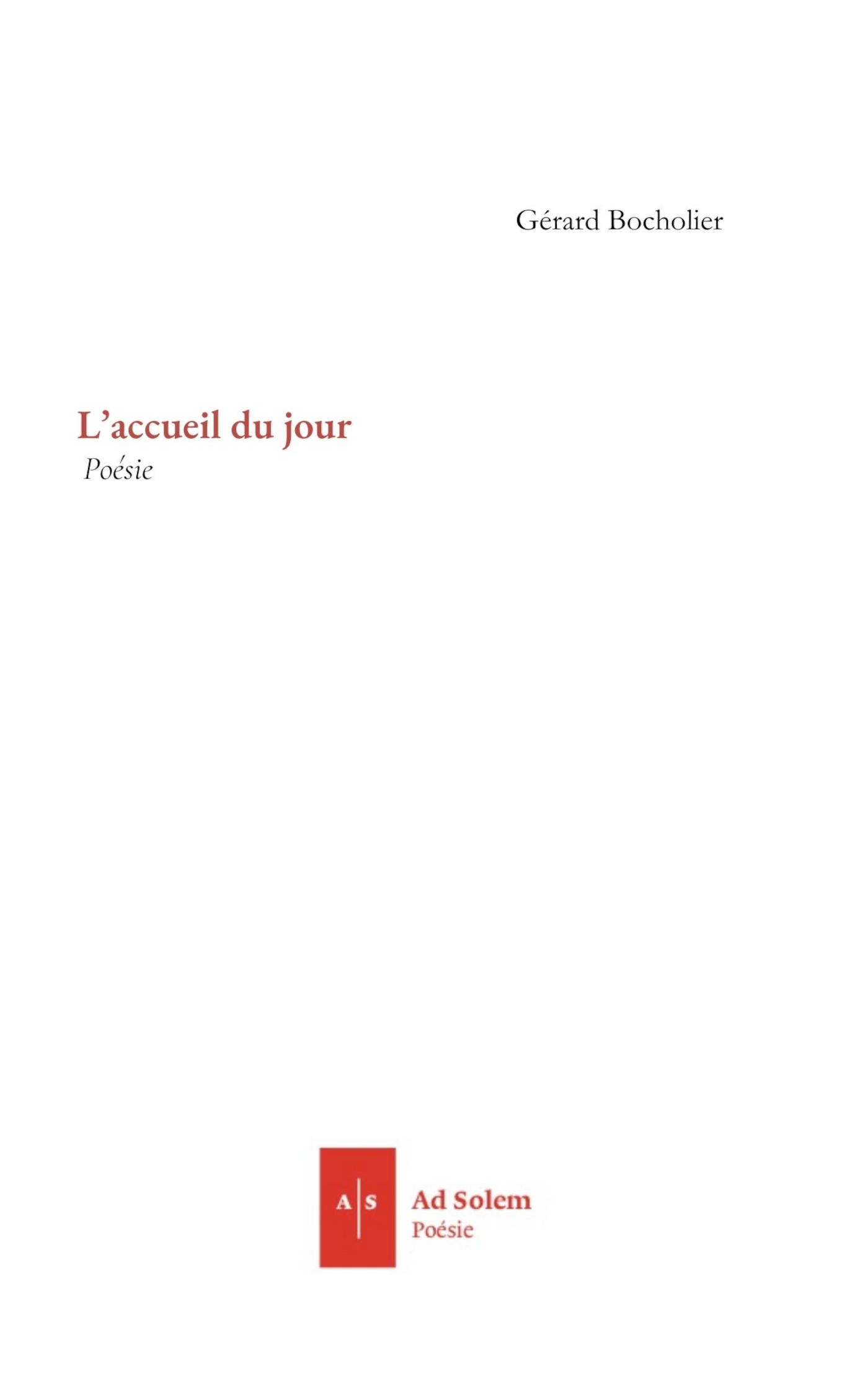 Accueillir le jour comme on recueille une promesse. Un double mouvement anime ce nouveau recueil de Gérard Bocholier : attente et anamnèse. Comme si le Jour qui vient se donnait déjà dans ceux que la mémoire recueille. Le poème dit aujourd'hui cette conjugaison de ce qui passe et qui vient. Il s'agit moins de décrire une présence que d'ouvrir la page comme on ouvre son coeur. Pour accueillir les mots que trace la main devenue consentante – aimantée par l'amour.