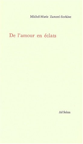 Un livre sur l'amour. Comme un peintre impressionniste, le Père Michel-Marie Zanotti-Sorkine fixe dans ces mots des êtres, des visages, des scènes, des occasions d'aimer ou de moins aimer. Pas de morale ici, mais une langue forgée à l'école de l'intelligence du coeur chère à Pascal, éclatante, chatoyante, tranchante aussi, pour éveiller les intuitions, décaper les idées reçues, révéler l'amour dans les recoins du quotidien - faire miroiter les facettes du coeur humain dans sa prédestination à aimer et sa vocation toujours compromise. De l'amour en éclats raconte une humanité inquiète et blessée, mais destinée à la beauté des gestes et des sentiments.